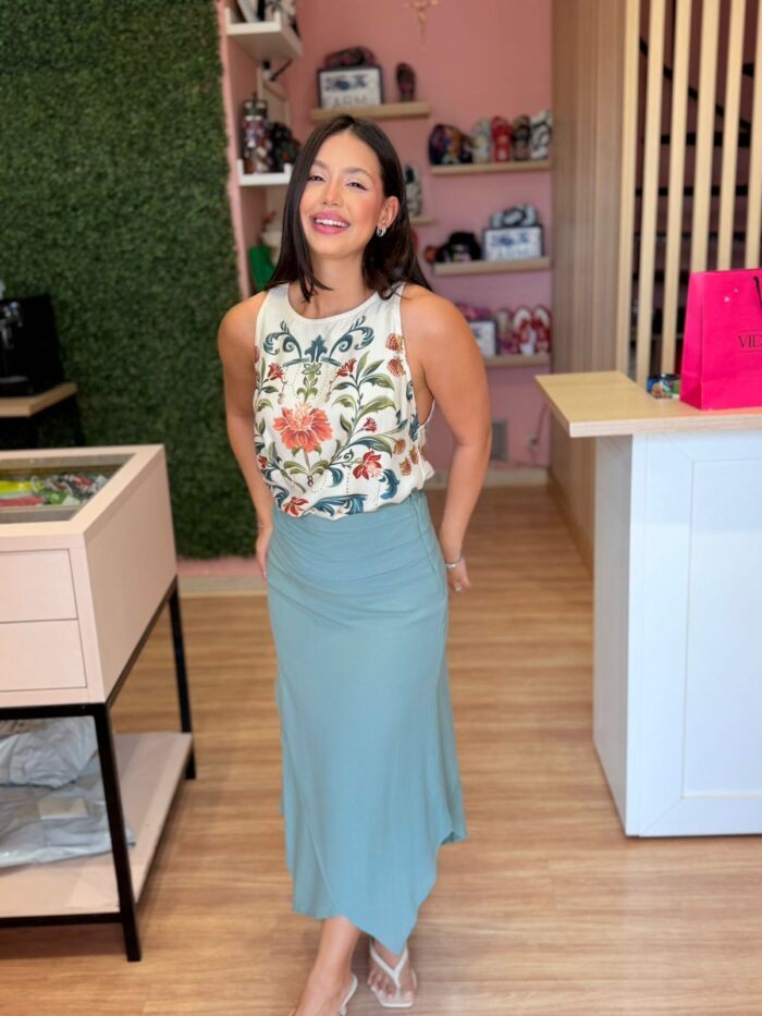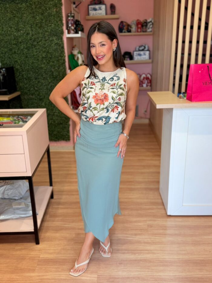 Saia Midi Irregular Pala Pregas MARIA fILO