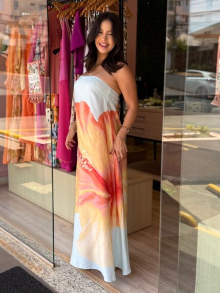 Vestido Longo Sem Alça Vestida de Flor | FARM
