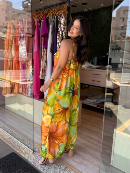 Vestido Longo Sem Alça Vestida de Flor | FARM