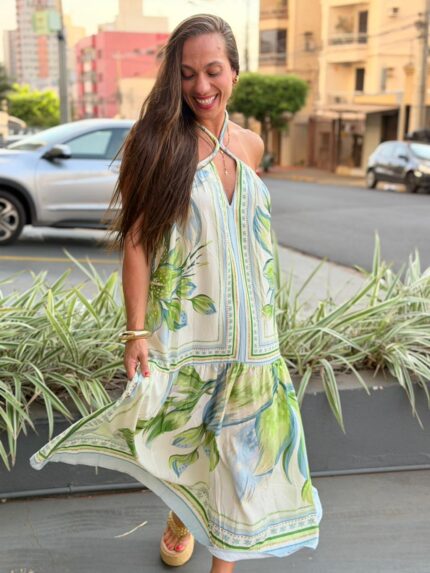 R$ 473,10 5% no Pix R$ 498,00 10x de R$ 49,80 s/jurosVestido Longo Manga Tropicalzinho Lenco FARM