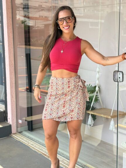 Saia Curta Pareo Estampa Gave Palha MARIA FILÓ