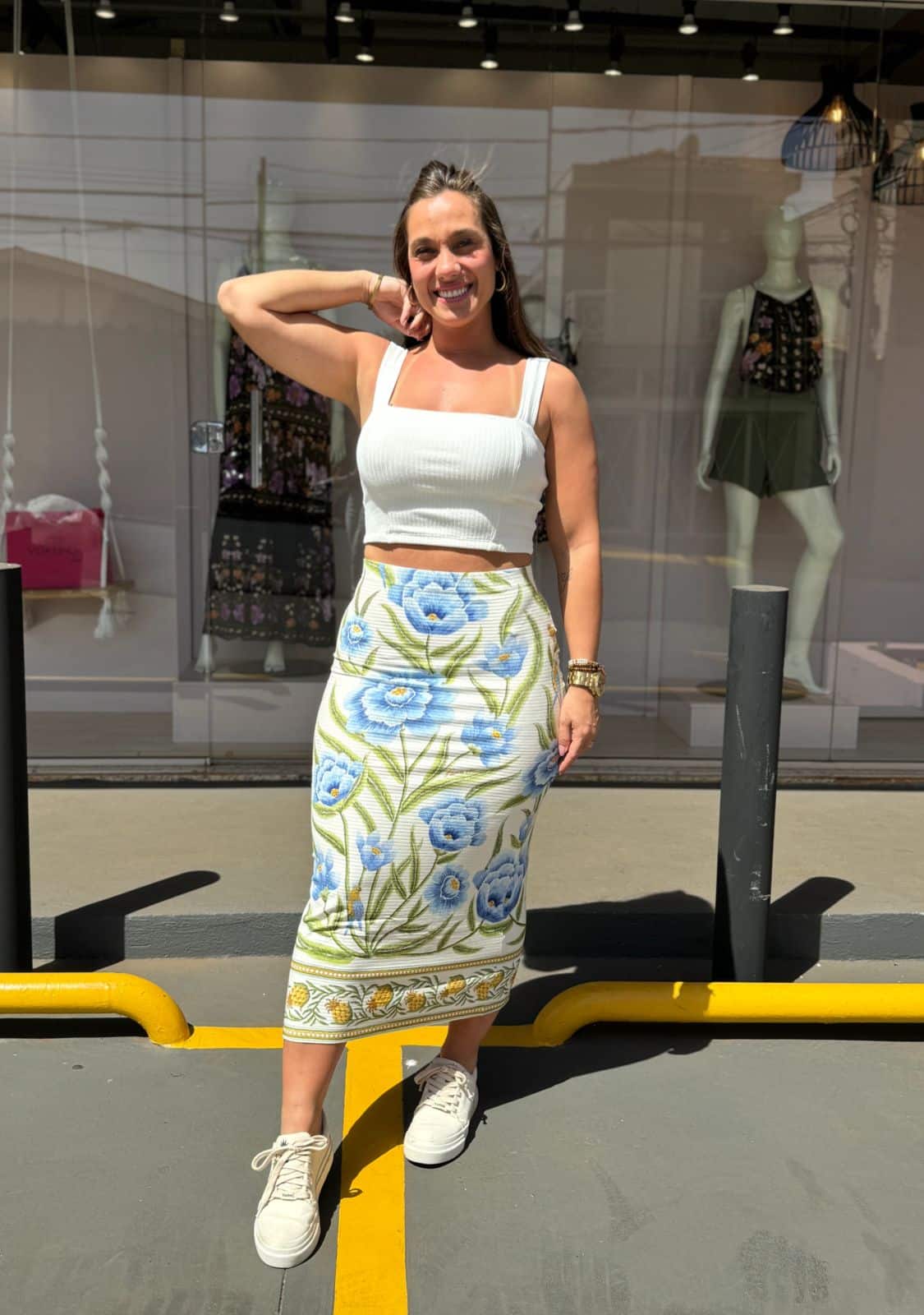 Descrição: Blusa Cropped Decote Quadrado possui comprimento curto , e alças finas.