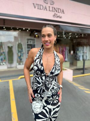 blusa estampada flora. com seu decote profundo e amarração delicada, esta peça traz um toque de frescor e originalidade ao guarda-roupa. a modelagem sem mangas oferece um caimento leve e confortável, ideal para momentos casuais ou para um encontro especial. FARM RIO original – verão 26.
