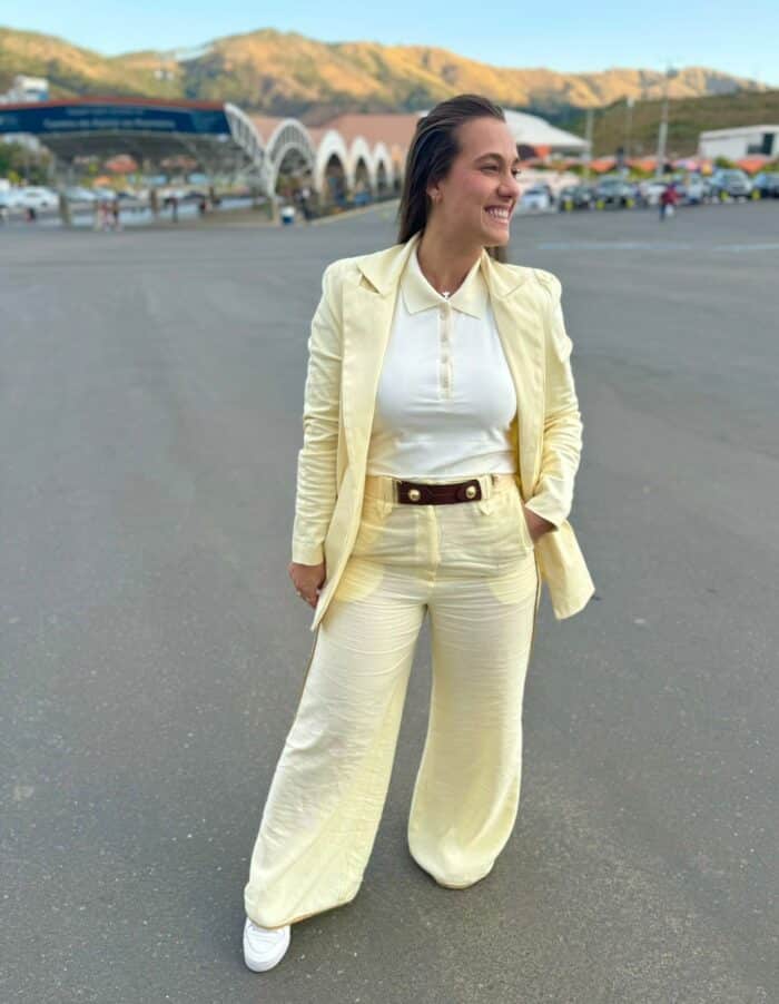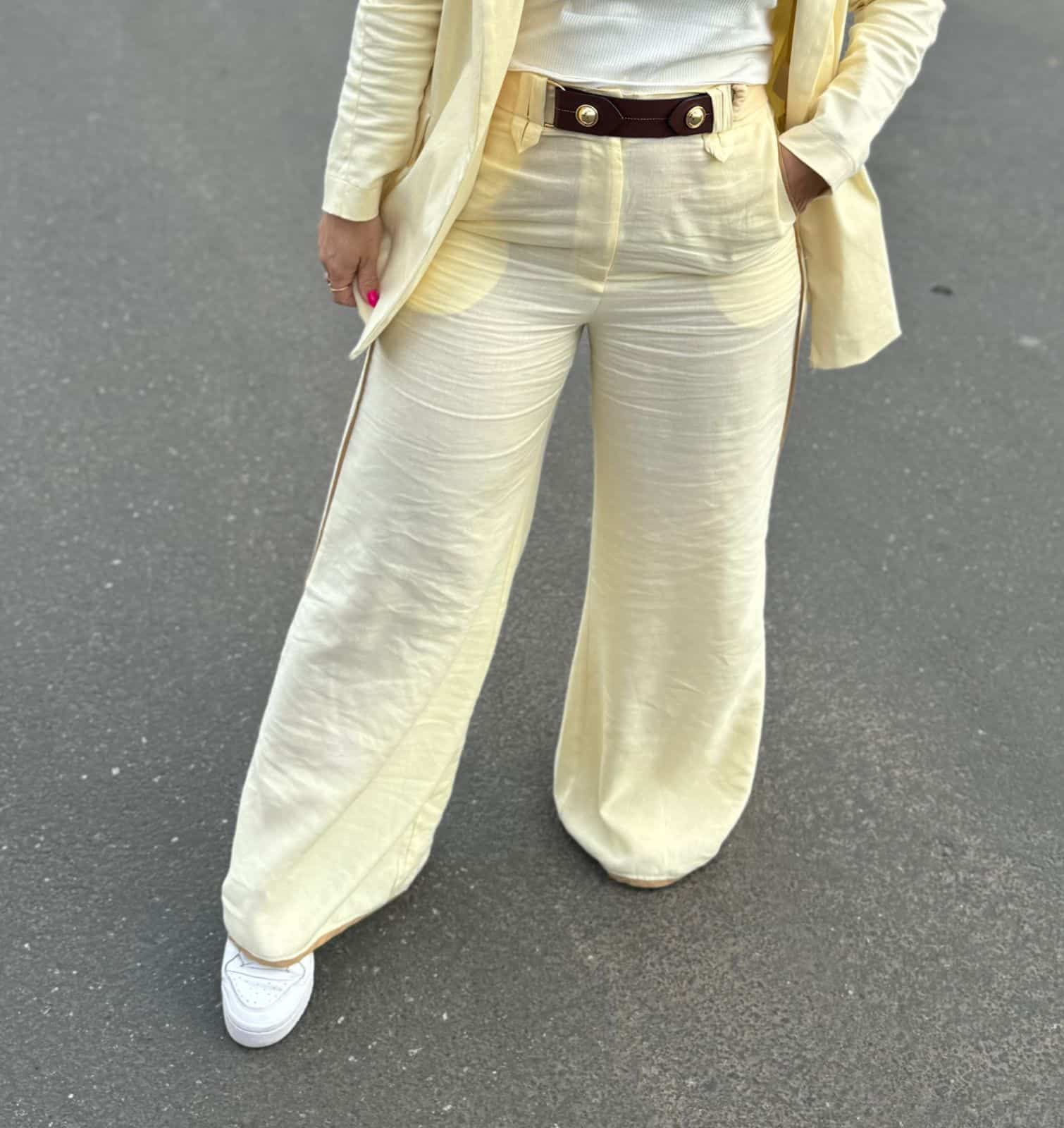 Descrição: Calça Linho Com Cinto Bege Lemon Mere , possui bolsos , cinto e é flare .