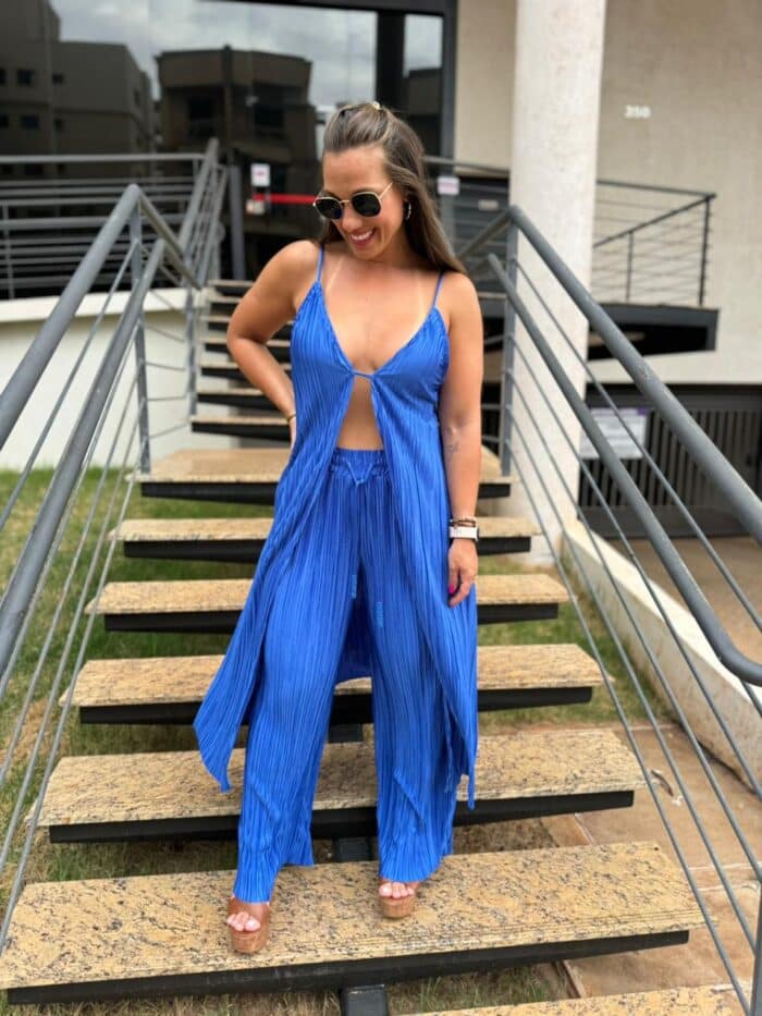 Descrição: Calça longa plissada confeccionada em tecido leve e fluido, a peça possui plissados que destacam seu movimento natural. sua modelagem alongada oferece conforto e estilo.