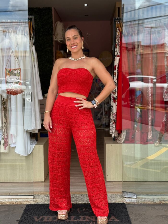 Conjunto Majú possui top reto , com hot pant acompanhado com calça.