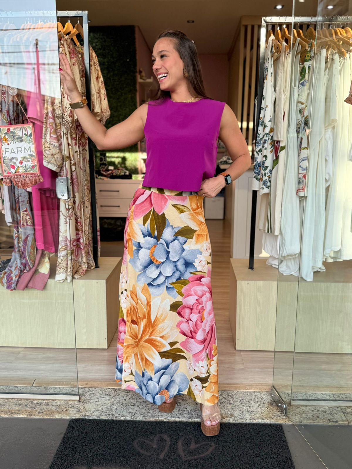 Descrição: Regata Abertura lateral Alfaiataria. Possui modelagem solta ao corpo, comprimento médio, aberturas laterais, corte alfaiataria.