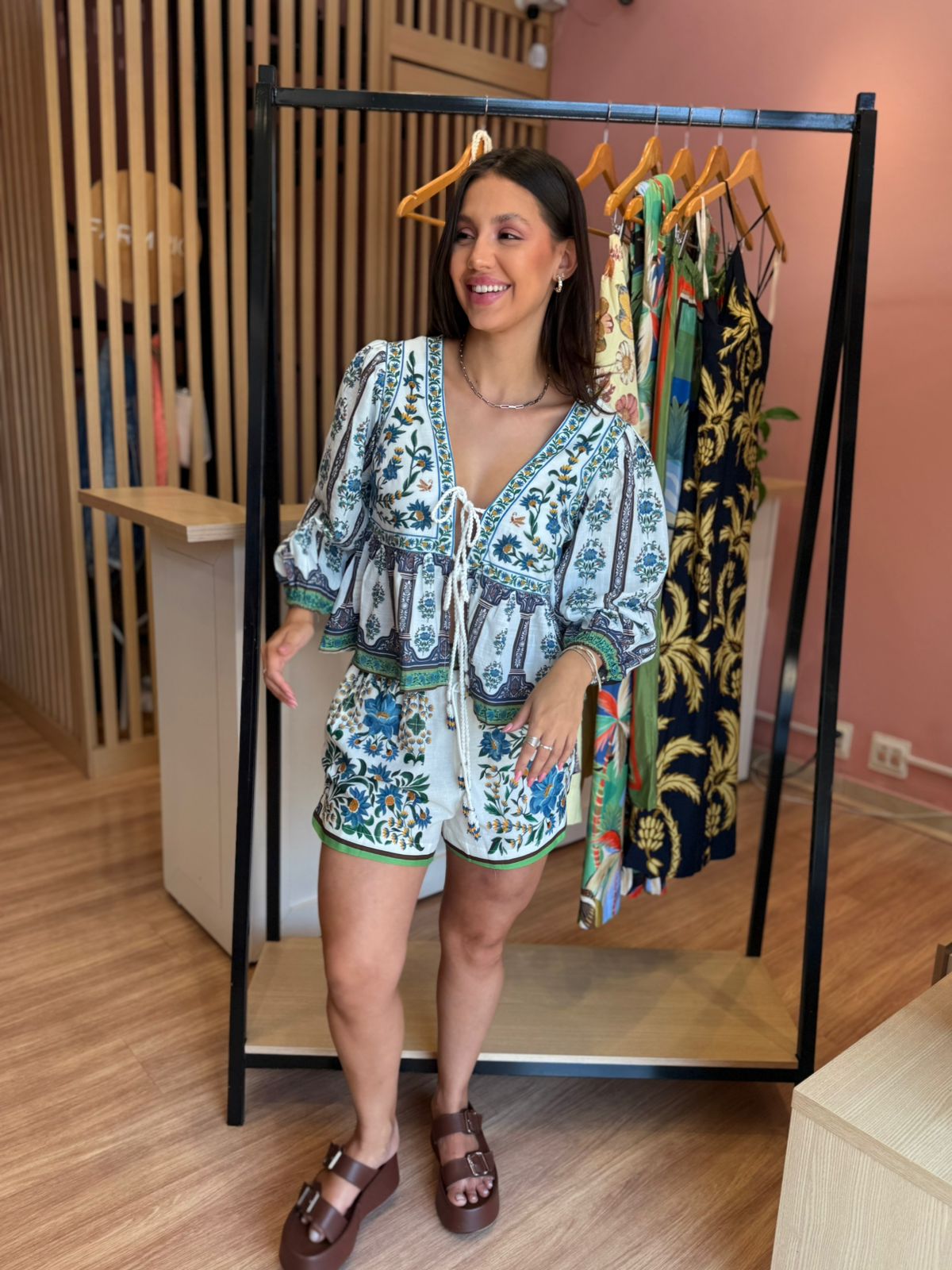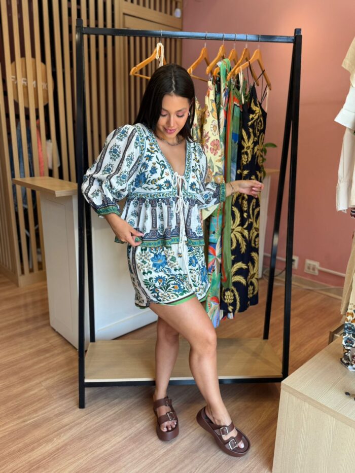 short estampada manoela é a peça que faltava no seu guarda-roupa para dias ensolarados com seu corte moderno e tecido leve. o cós elástico proporciona conforto, enquanto a barra arredondada adiciona um toque exclusivo. ideal para passeios ao ar livre ou um encontro casual. combine com tops neutros ou coloridos. FARM RIO original – verão 26.