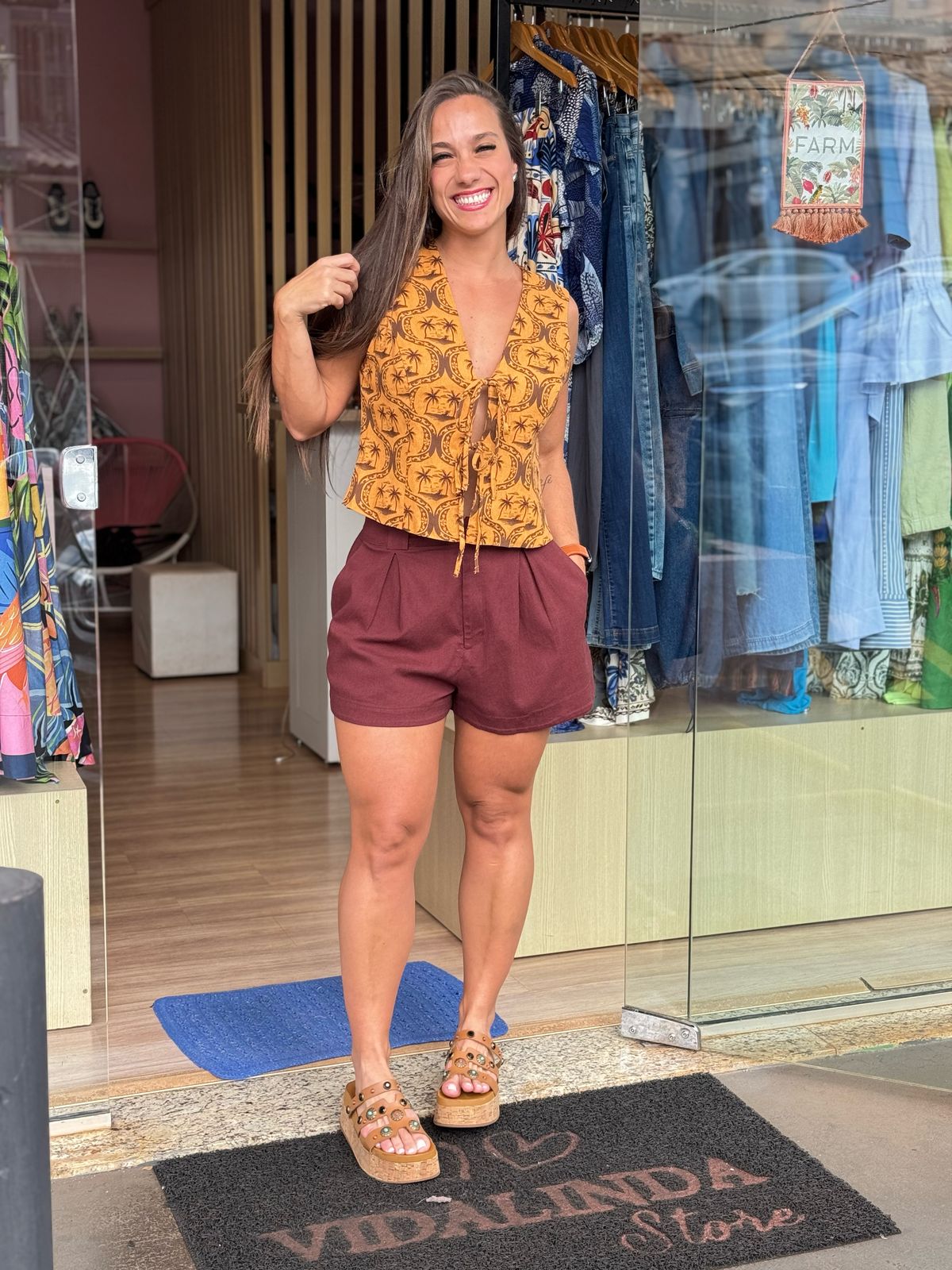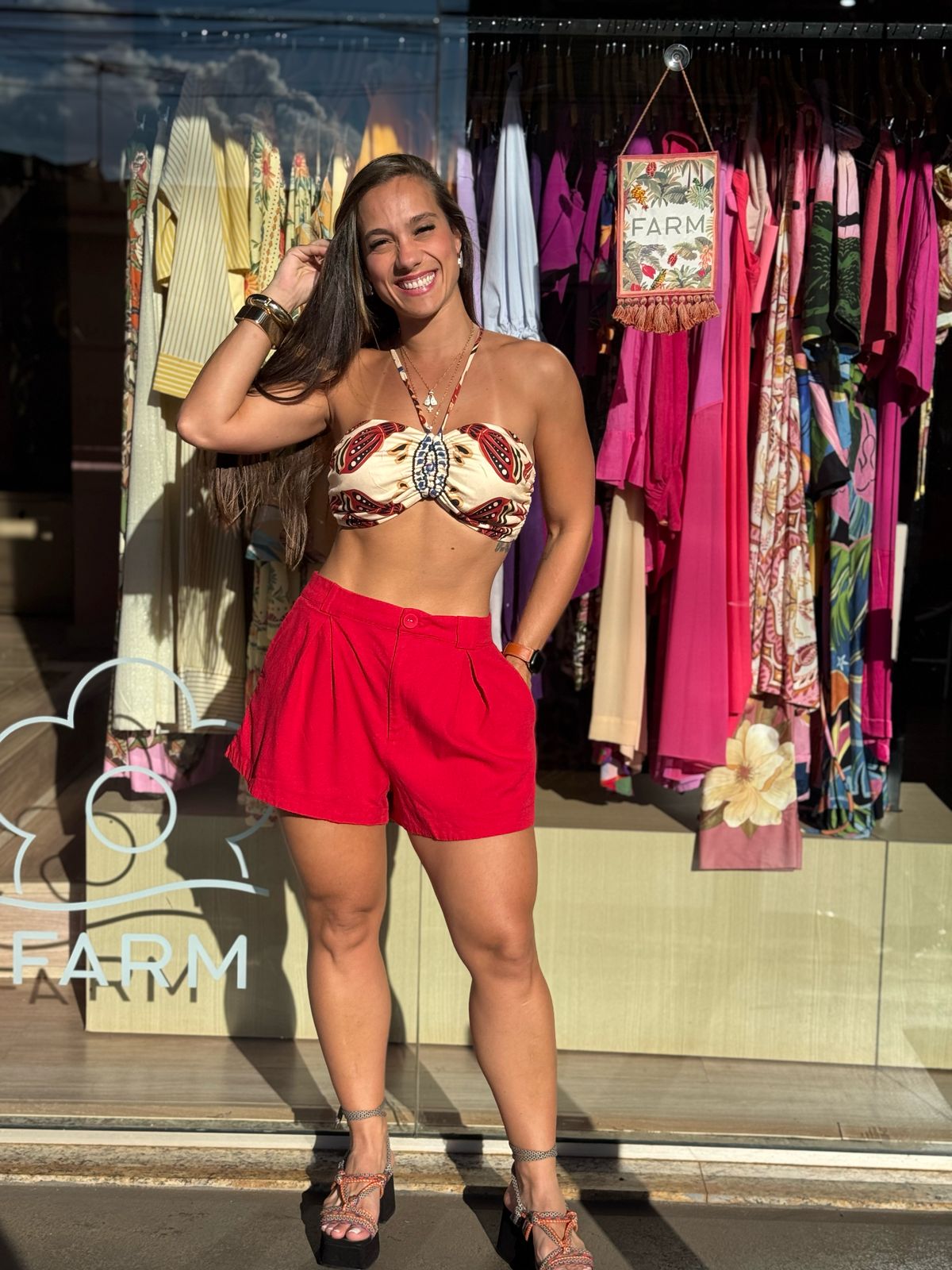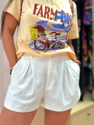 short pregas bolso lateral. uma peça versátil que combina estilo e conforto. sa modelagem com pregas e bolsos laterais oferece praticidade e charme para o dia a dia. perfeito para passeios casuais ou encontros descontraídos. um complemento ideal para compor looks cheios de personalidade. FARM RIO original – inverno 25.