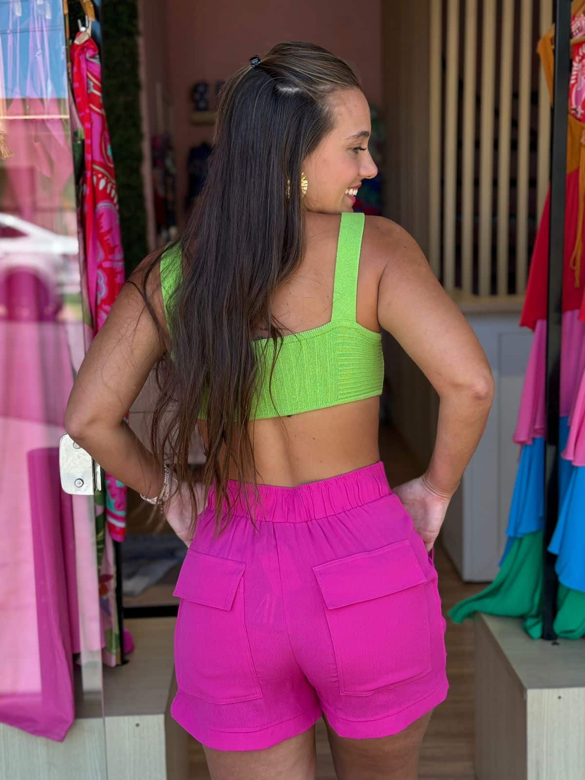 Descrição:Shorts Cintura Alta Com Pregas. Short cintura alta com pregas na frente caimento reto e maravilhoso. Tecido leve. Contém elástico atras.
