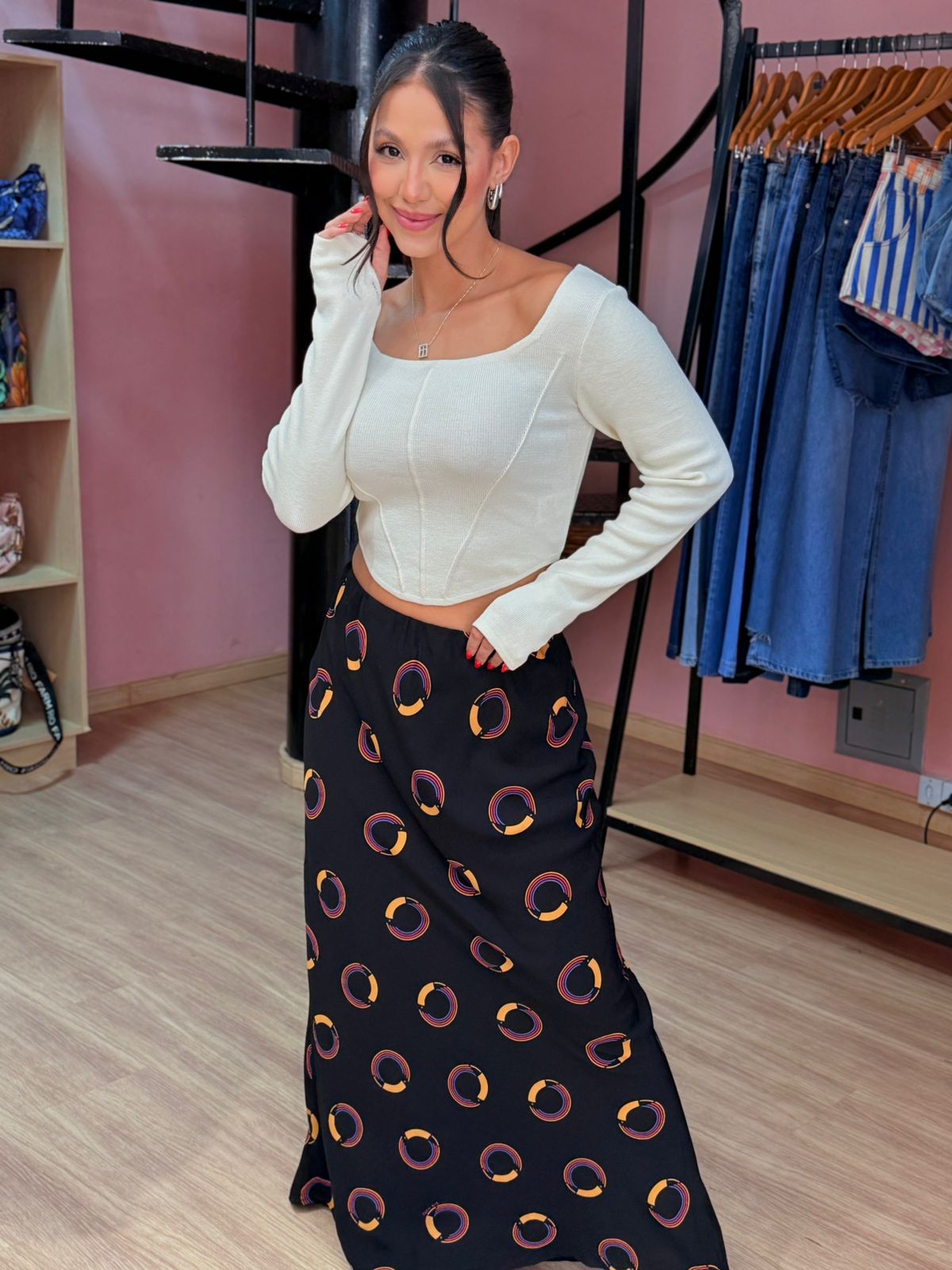 top manga comprida tricot. traz design minimalista com decote quadrado que realça o pescoço e mangas longas que proporcionam conforto nos dias mais frescos. a modelagem ajustada valoriza produções casuais, ideal para combinações com jeans ou saias fluidas. uma peça versátil que transita entre o trabalho e o lazer. FARM RIO original – alto inverno 25.