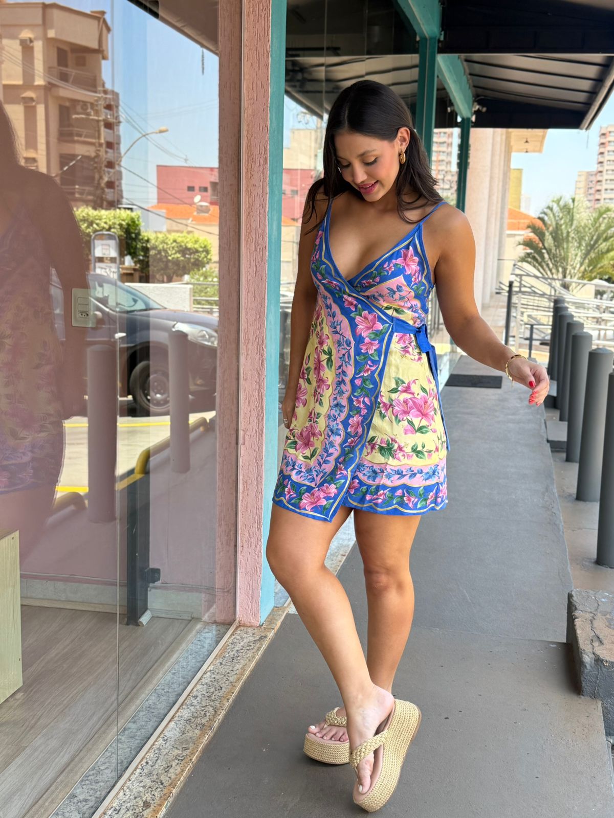 vestido curto estampado lena traz a essência vibrante da FARM com um toque único. com alças finas, decote em v e modelagem envelope, ele é perfeito para dias de leveza. produzido em tecido leve e confortável, o vestido é ideal para passeios casuais ou encontros especiais. detalhes sutis elevam o design, refletindo originalidade e estilo. FARM RIO original – alto verão 26